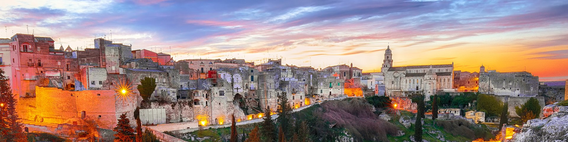 La crosta carsica dell’Alta Murgia è solcata da crepacci, canyon e grotte che, straordinario a dirsi, furono abitate fin dalla preistoria. L’antica città sorge sul ciglio di una forra e offre tutt’oggi uno scenario unico. Il modo migliore per esplorare cripte e grotte in profondità è partecipare a una visita guidata lungo le gole. Infine le maestose chiese del centro storico testimoniano dell’importanza della città come sede episcopale.